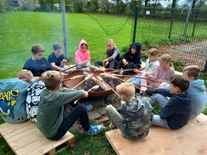 Vanmiddag hebben de leerlingen van groep 5 t/m 8 brood gebakken boven het kampvuur.